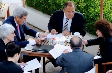 Foto: El secretario de Estado estadounidense, John Kerry, y el ministro de Asuntos Exteriores ruso, Sergei Lavrov, en la última sesión de negociación en Ginebra sobre el acuerdo para eliminar las armas químicas de Siria, 14 de septiembre de 2013. (Departamento de Estado, Wikimedia Commons, Dominio público)