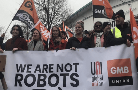 Foto: Los trabajadores del centro de distribución de Amazon en Coventry (Reino Unido) han anunciado una huelga. Febrero de 2023.