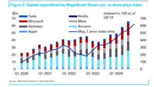 Inversión de capital de los Siete Magnificos frente al índice de precios de las acciones