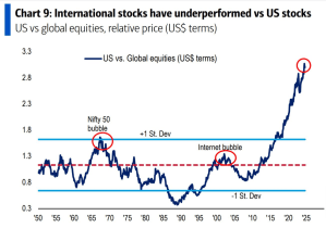 Las acciones internacionales han tenido un rendimiento inferior al de las acciones estadounidenses.