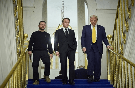 Foto: Por iniciativa del presidente francés Emmanuel Macron, Donald Trump, siendo ya presidente reelecto, conversó en la capital francesa con el presidente no electo de Ucrania, Volodimir Zelenski, al margen de la reapertura de la catedral de Nuestra Señora de París, el 7 de diciembre de 2024.