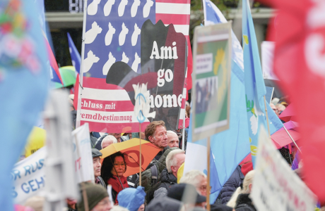 Foto: Decenas de miles de alemanes se reúnen para oponerse al continuo envío de armas a Ucrania y protestar contra el hecho de que Estados Unidos y los países occidentales enciendan el conflicto entre Rusia y Ucrania el 3 de octubre de 2024. Foto: IC
