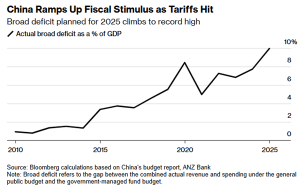 En la APN, los dirigentes chinos fijaron el objetivo de crecimiento del PIB para 2025 en «alrededor del 5%«, manteniendo el mismo ritmo que el año anterior. Li Qiang anunció planes para impulsar la demanda interna ampliando el gasto fiscal. Para ello, el gobierno central aumentará el endeudamiento, y el déficit público oficial se elevará al 4% del PIB, la proporción más alta de los últimos 30 años.