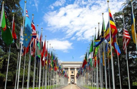 Foto: La Avenida de las Naciones frente al Palacio de las Naciones, sede de las Naciones Unidas en Ginebra.