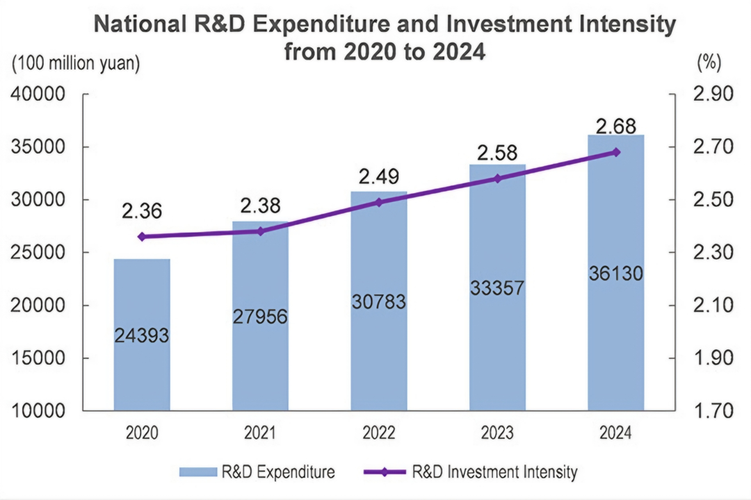 Datos oficiales indican que China destina 2,4% de su PIB a I+D, una cifra sostenida en crecimiento durante la última década, lo cual ha facilitado innovaciones en inteligencia artificial, energía limpia, semiconductores y redes de comunicación avanzada.
