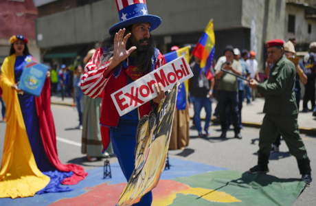 Foto: Protesta contra la Exxon Mobil por su saqueo de recursos naturales en la Guayana Esequiba. Septiembre de 2023, en Caracas. Ariana Cubillos (AP)