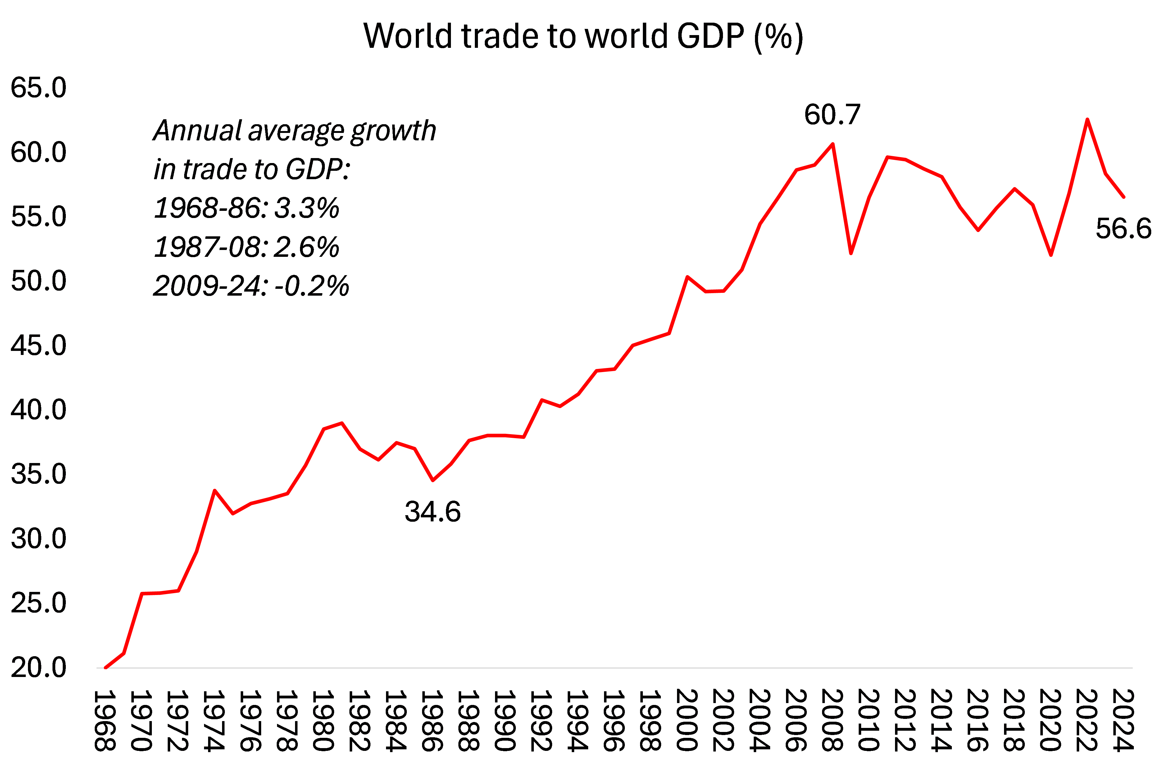 Comercio mundial respecto al PIB mundial (%)
