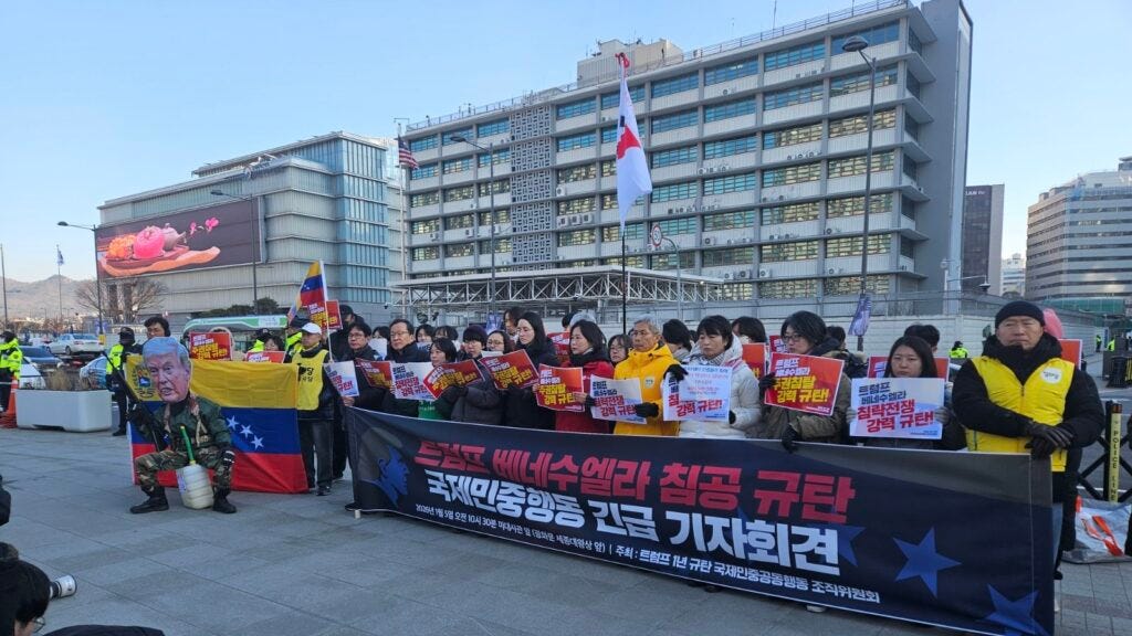 En Corea del Sur, el lunes se organizó una gran manifestación para exigir que «Estados Unidos deje en paz a Venezuela» y sus recursos naturales.