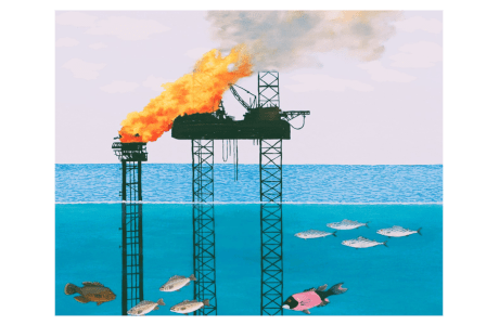 Obra: Jessie Homer French, Incendio en una plataforma petrolífera, 2019