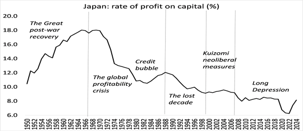 La clave del fracaso de las medidas neoliberales para impulsar la inversión empresarial y poner fin al estancamiento de la economía japonesa desde la década de 1990 ha sido la disminución de la rentabilidad de la inversión de capital. La rentabilidad del capital en Japón ha caído más que en cualquier otra economía del G7.