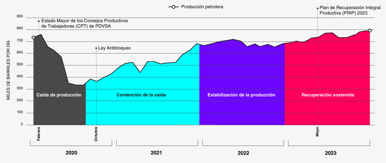 Esta recuperación se desarrolló mediante la activación de los Consejos Productivos de Trabajadores Petroleros (CPTP), la rehabilitación de infraestructura crítica y la sustitución de tuberías en el Lago de Maracaibo.