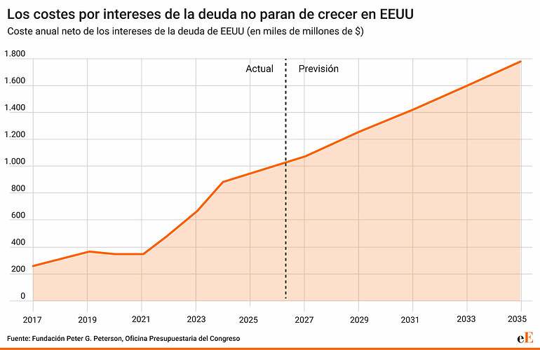 El tamaño de la deuda y, sobre todo, el hecho de que esté en manos de los mercados en una proporción muy superior a lo habitual, han hecho que Estados Unidos dependa de la reacción de los inversores para poder sostener políticas como, por ejemplo, una guerra.
