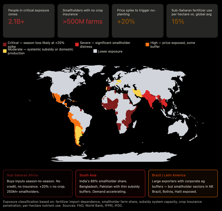 Según la Organización Mundial de la Salud, ya hay 363 millones de personas en riesgo de padecer hambre aguda, 45 millones de ellas debido a la crisis en Asia occidental y a la escasez de fertilizantes procedentes de esa región.