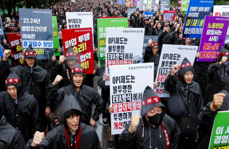 Kap Seol. Los miembros del sindicato Samsung Electronics durante la huelga de tres días que ha tenido lugar en Hwaseong, Corea del Sur. Foto: Soo-hyeon Kim/Reuters 19 de julio 2024. Samsung, buque insignia del capitalismo surcoreano y una de las mayores empresas de electrónica del mundo, caracterizada por sus prácticas antisindicales, se vio obligado a … Sigue leyendo LOS MOTIVOS DE UNA INÉDITA Y TRIUNFAL HUELGA EN SAMSUNG. Kap Seol.